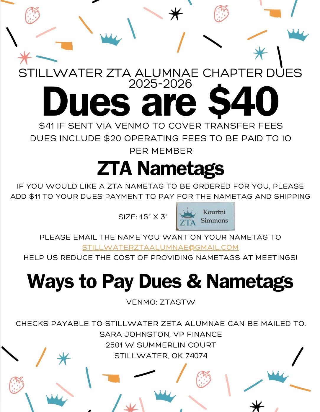 Please contact our President, Jessica Blevins, at StillwaterZTAAlumnae@gmail.com if you would like to become a member.